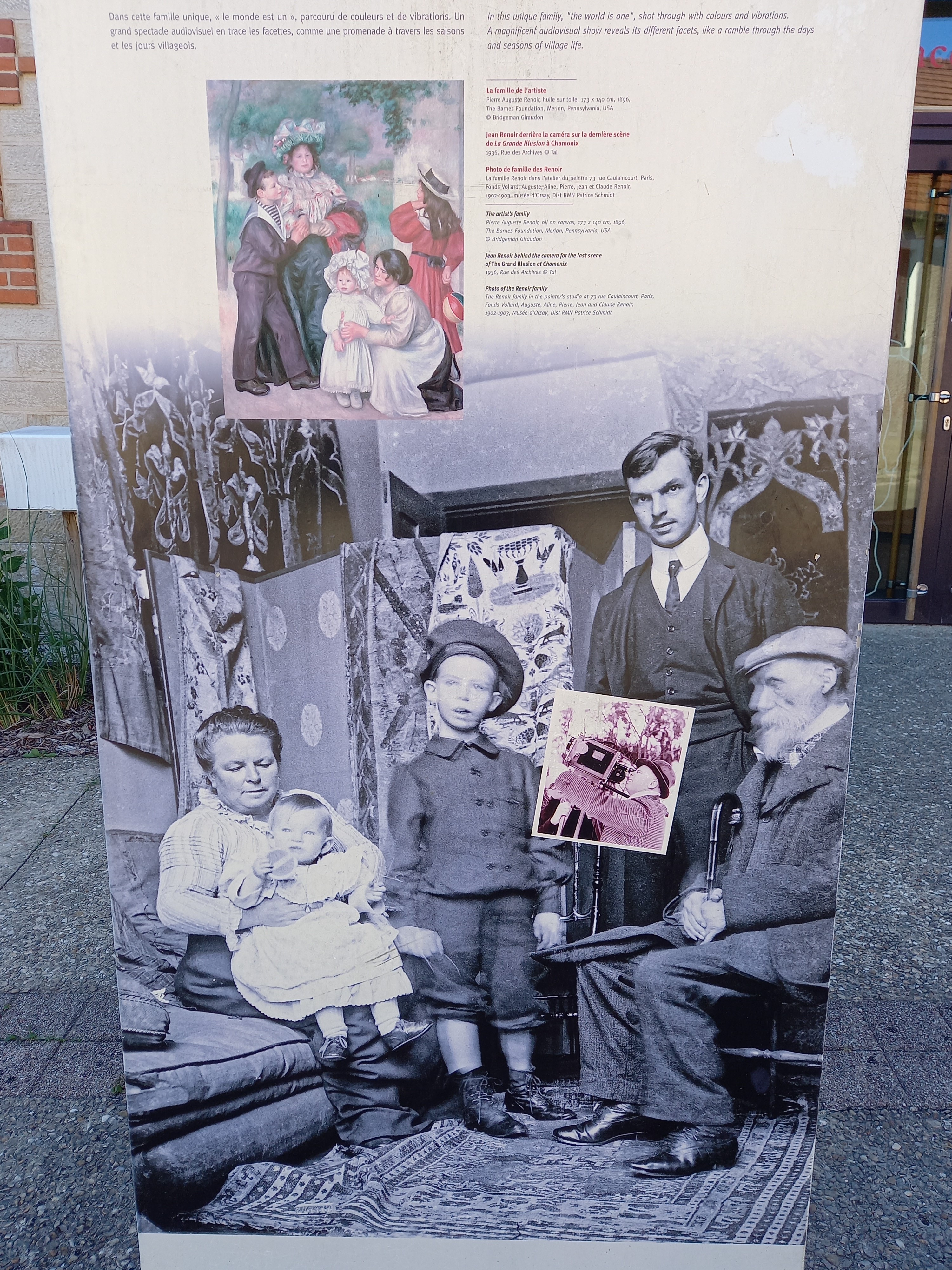 Projection film sur biographie de Renoir très bien. Il existe en plusieurs langues. Suite à gros dégâts des eaux exposition renoir annulée mais une exposition film et Renoir sympa. Se rendre ensuite à la maison de Renoir