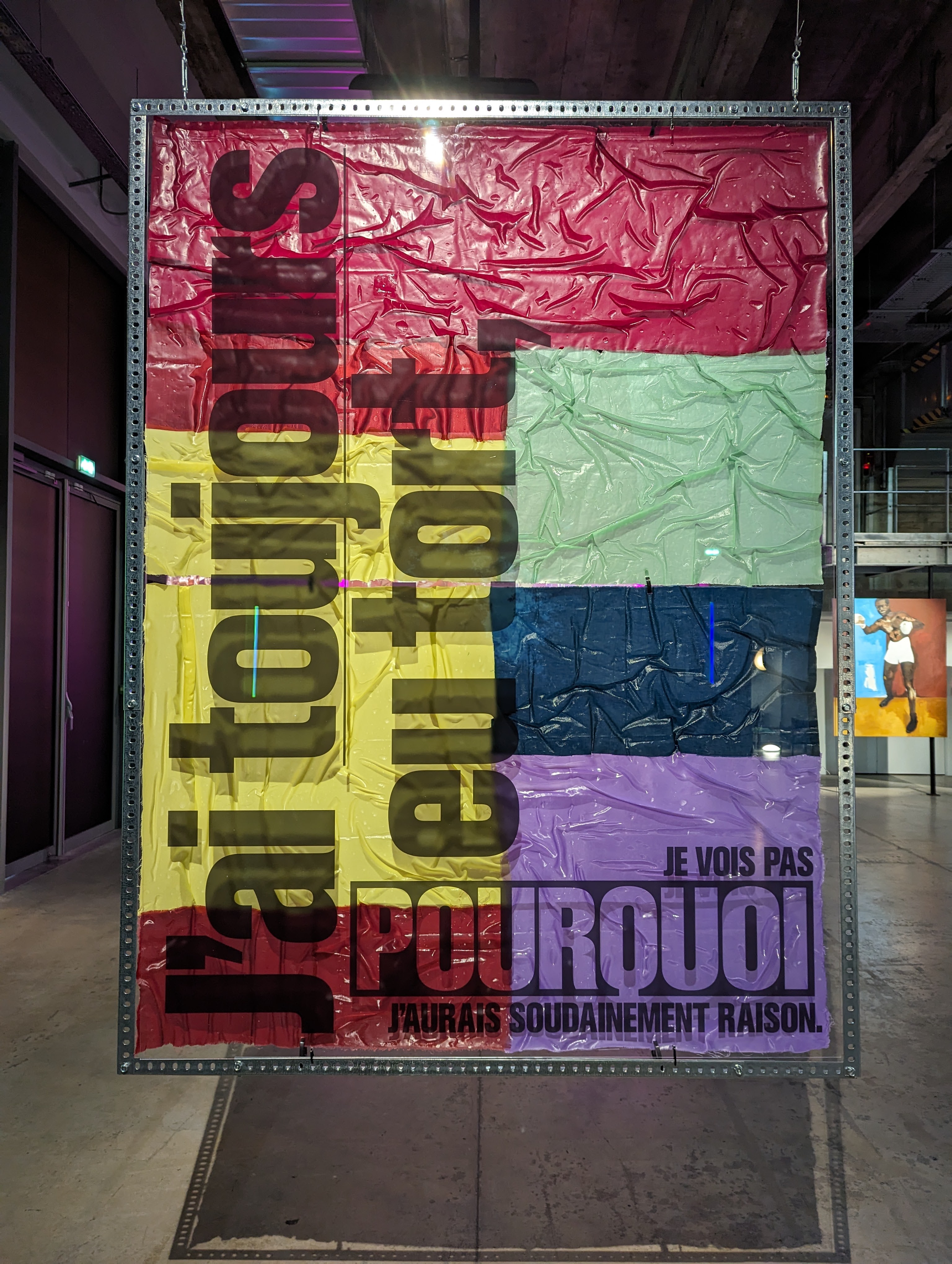 Visite de l'expo futures of love (expo gratuite) . Le lieu est très spacieux, et permet de mettre en scène de très belles et grandes expositions. Possibilité aussi de faire des manifestations interactives (en l'occurrence colloque et workshop). C'est un lieu culturel très appréciable au bord du Canal de l'Ourq